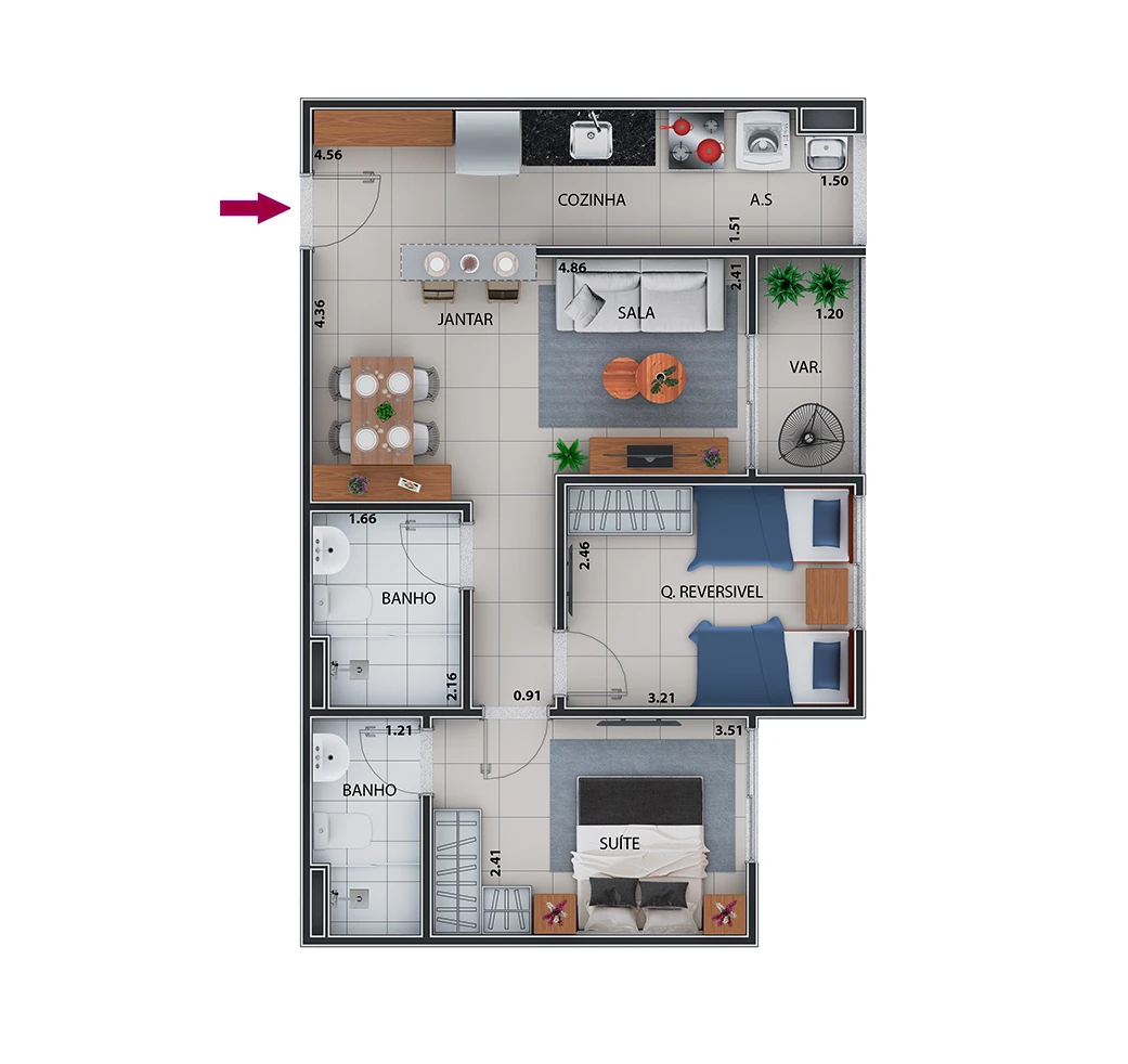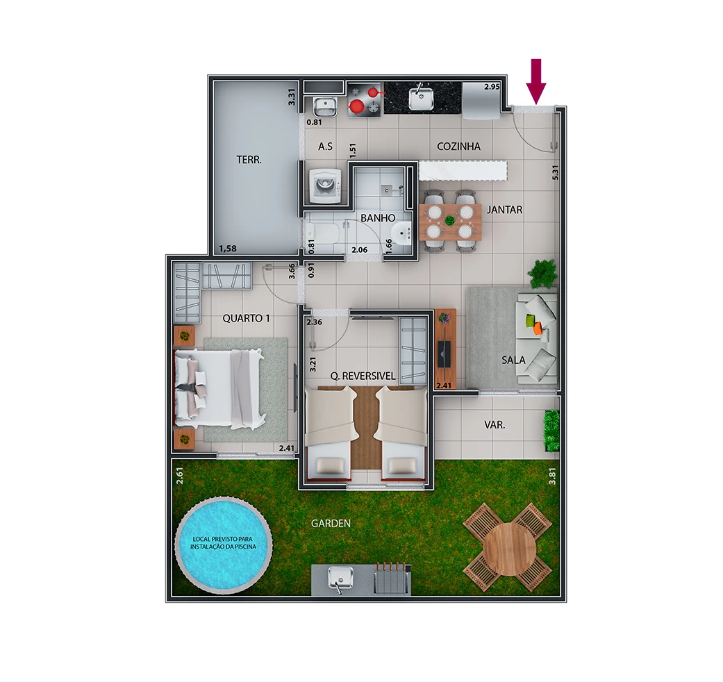 Studios, 2 quartos com ou sem suíte, apartamentos garden e coberturas lineares.